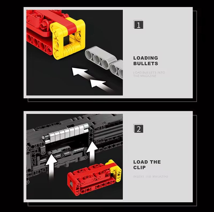 Unsere aus Bausteinen gefertigten Modelle sind für Sammler entwickelt, die detailreiche Konstruktionen mit sanften, realistischen Bewegungen lieben. Jedes Modell verwendet ein einfaches System aus gleitenden Teilen und hebelähnlichen Baustein-Mechanismen, um eine zufriedenstellende, rein handbetriebene mechanische Aktion zu erzeugen – vollständig nicht funktionsfähig als Waffe.